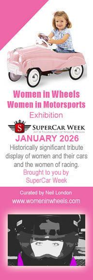 *BE PART OF HISTORY: SUPERCAR WEEK WOMEN IN WHEELS / WOMEN IN MOTORSPORTS The photo can be a new photo taken recently, or just for this exhibition, or from a family album/archive. Please make a copy of your photo. Do not send originals as all received photos will be come property of Women in Wheels / Women in Motorsports and will not be returned. You may write something on the photo if you like such as name/date/location. The only qualifying aspect is that the source of the photo comes from a woman auto enthusiast, of that woman and an automobile or a female family member and an automobile. The woman in the photo does not have to own the automobile. thank you, Neil London |